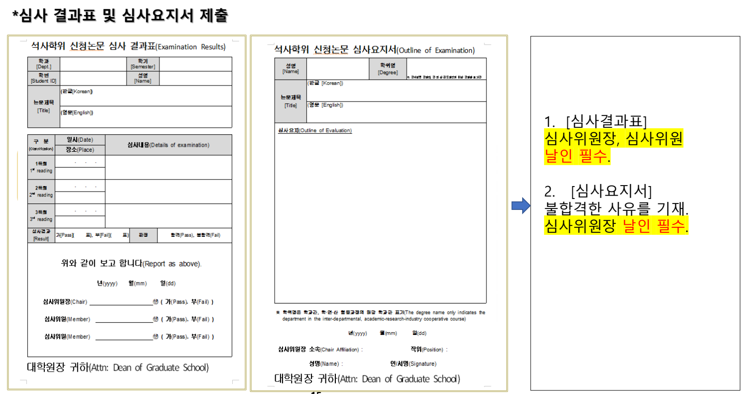 * 안내 사항 미숙지로 인하여 논문 심사 결과 제출에 문제가 발생하지 않도록,