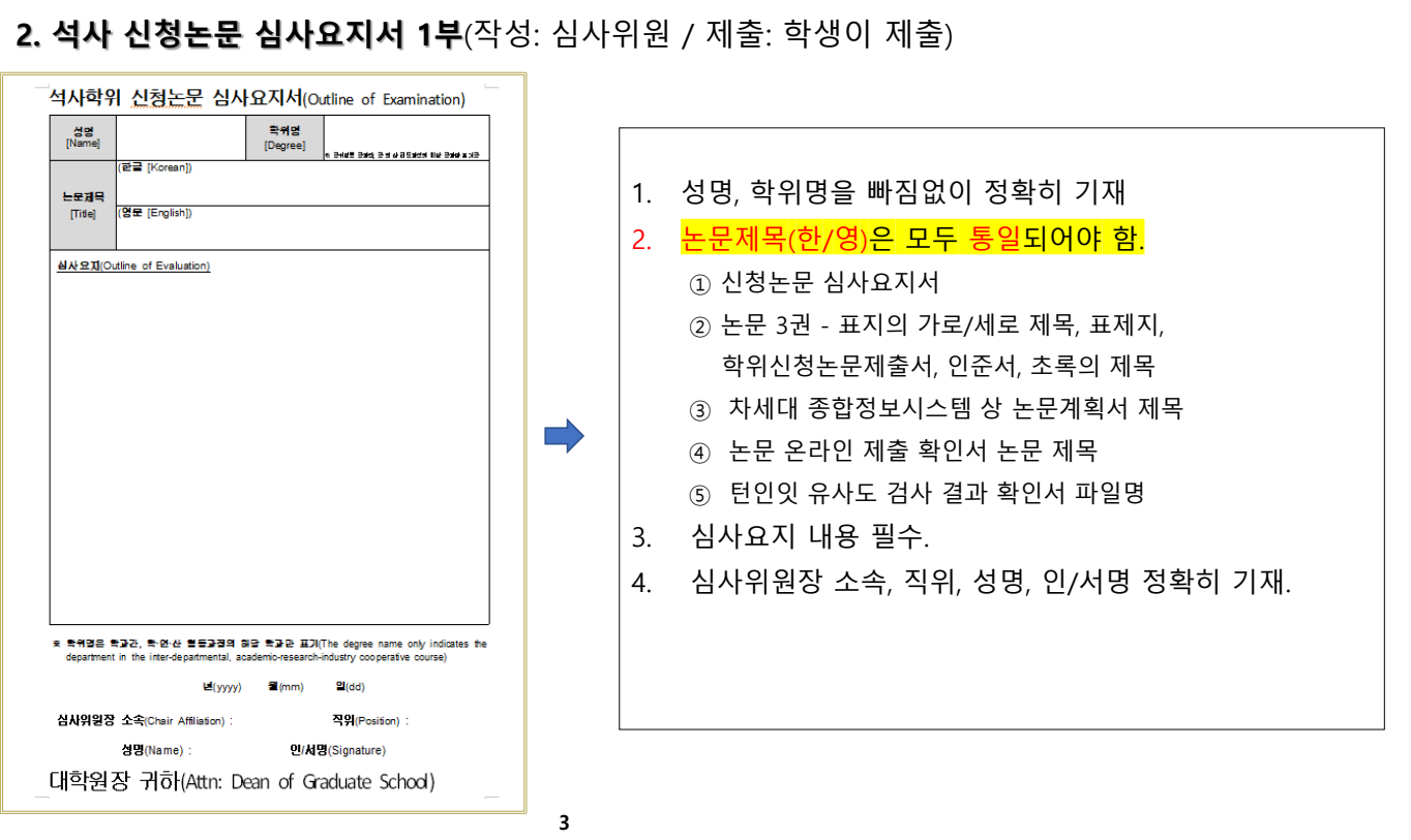 [1. 학위 신청 논문 심사결과표 1부. 2. 학위 신청 논문 심사요지서 1부.] 제출 요망.